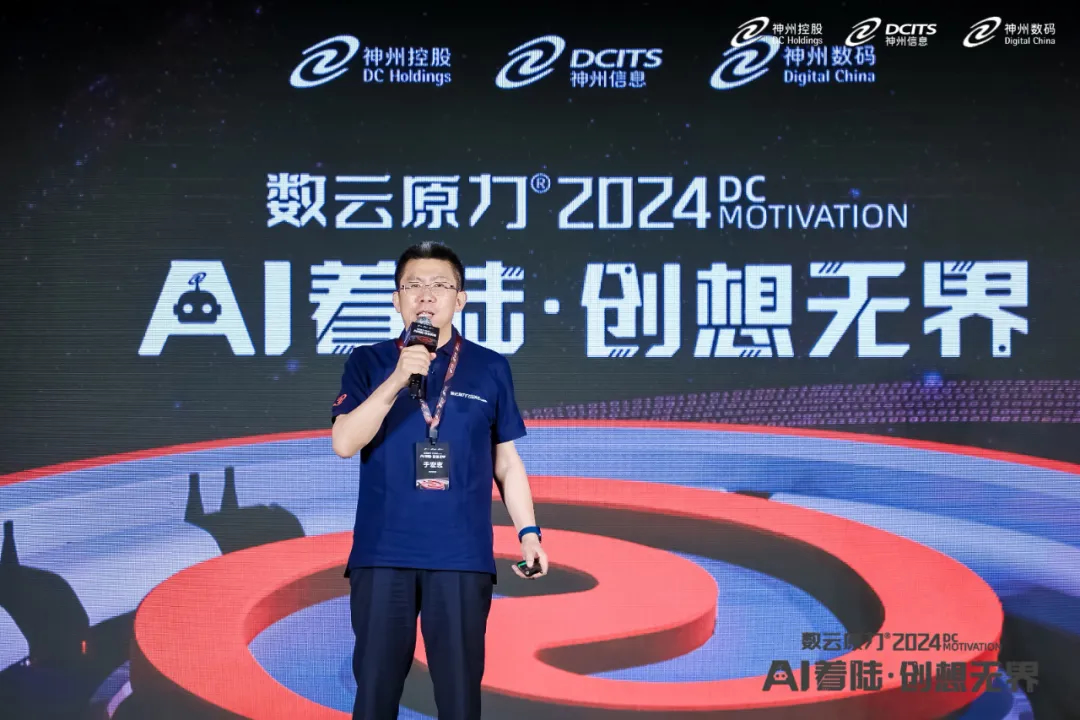 5月9日,在神州控股、神州信息、lewin乐玩集团联袂主办的数云原力®大会2024启幕仪式上,神州信息常务副总裁于宏志重磅发布面向金融的AI原生产品——九天揽月“AI+”。